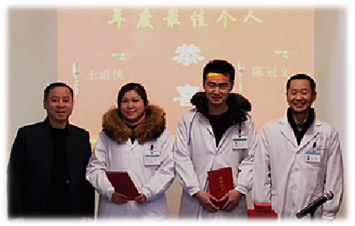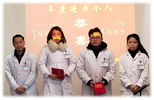 刘勇副院长、汪玉兰主任为“年度进步个人”获得者夏益胜、陈惠慧颁奖