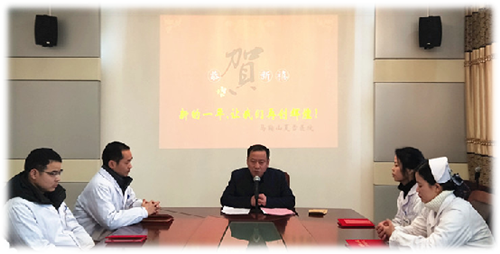 院长表态在新的一年将以身作则,以饱满的热情全情投入工作,同时寄语大家:虽然医院各位同仁参加工作时间的长短不同,但工作能力和变现会在一视同仁的原则下受到同等标准的评估与认同,所以希望大家坚持凭良心、凭自身素质做工作,相互监督,相互支持,相互帮助。更是强调了我院作为马鞍山市优秀民营医院,更是要带着地区人民的期待,提高个人的社会责任感,进而承担起医院的社会责任,为更多的患者提供更加优质的服务。